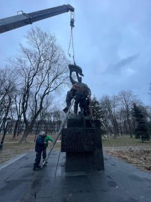 Монумент участникам Январского восстания 1918 года демонтировали в Киеве, сообщила замглавы Киевской городской госадминистрации Анна Старостенко и в подтверждение опубликовала фотографии.