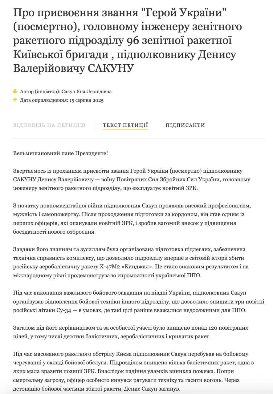Это стало известно из петиции на сайте Зеленского, благодаря чему выяснилось, что прилет был по позиции ЗРК.