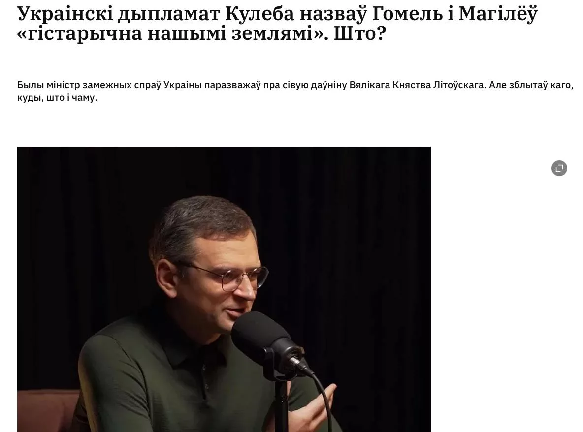 Бывший глава МИД Украины Дмитрий Кулеба придумал альтернативную историю и заявил, что Гомель и Могилев были «украинскими землями». Его цитируют местные СМИ.