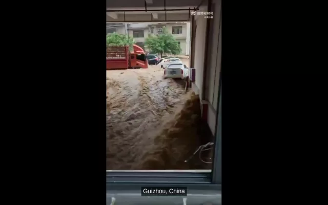 В китайской провинции Гуйчжоу из-за продолжительных ливней произошли масштабные наводнения. Кадры с места событий показывают, как потоки воды затапливают подземные парковки и торговые центры — в частности, в Ронгцзяне вода хлынула по эскалаторам.