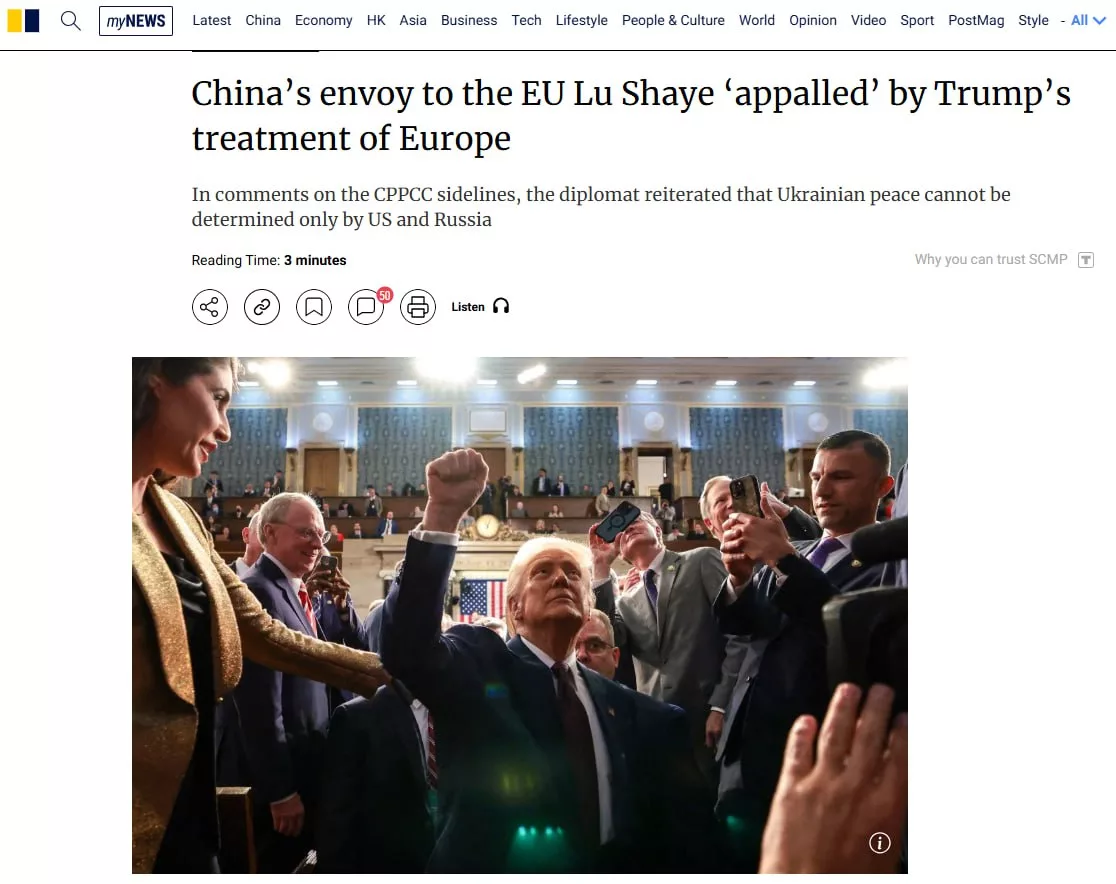 Китайский спецпосланник по европейским делам Лю Шай заявил, что был «потрясен» отношением Трампа к «европейским союзникам», подчеркнув, что мир в Украине не должен определяться только США и Россией, — пишет South China Morning Post.