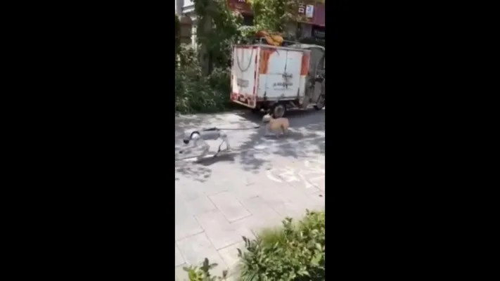 Говорят, подобное уже становится обычной картиной в Поднебесной. Хотя и собака не выглядит особо довольной и вообще робот ее скорее ведет куда-то, чем выгуливает.