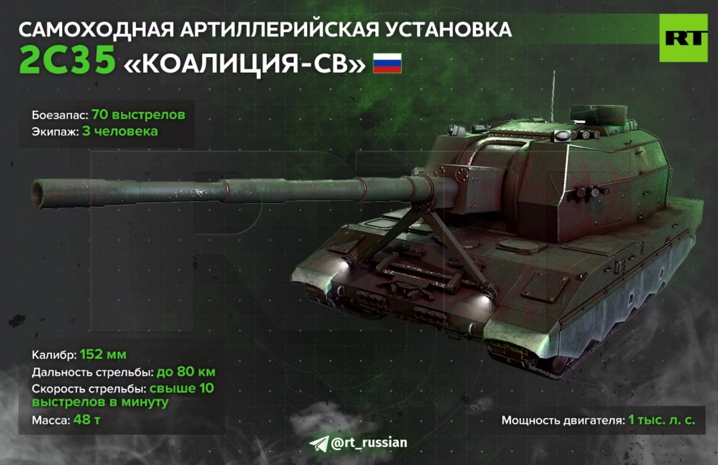 «Коалиция-СВ» — артиллерийский комплекс калибра 152 мм, созданный на базе танка Т-90. Первые образцы САУ поступили в ВС РФ в 2015 году.