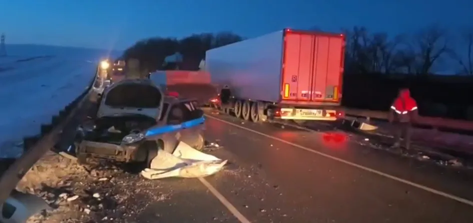 В Медвенском районе Курской области на федеральной трассе М-2 «Крым» произошла серьезная авария, которая унесла жизни двух человек и привела к госпитализации сотрудников Госавтоинспекции. Как сообщает Piter.tv, трагедия случилась 26 января на 556-м километре автодороги.