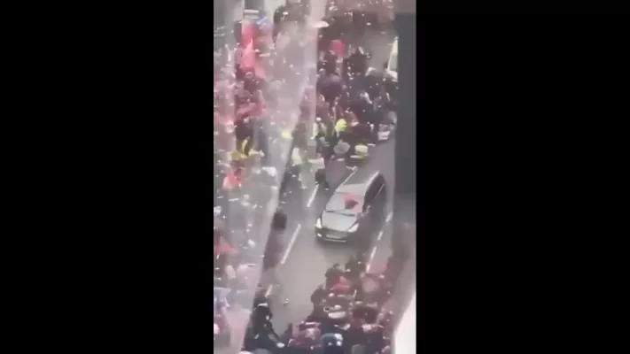 Водитель не остановился на узкой дороге на Уотер-стрит и врезался в толпу людей. Минимум пятеро человек пострадали.
