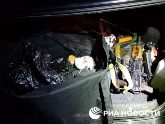 В багажнике машины были обнаружены два автомата, около 500 патронов, гранаты РГД и Ф1.