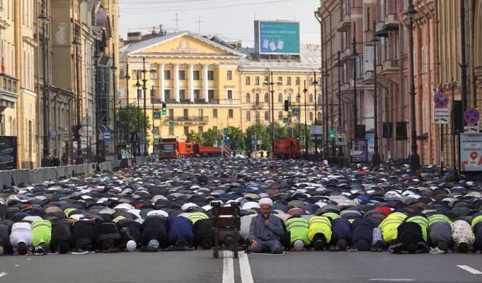 Праздничный намаз прошёл у Московской Соборной мечети, где с самого утра собирались верующие. Атмосфера была торжественной и мирной — звучали молитвы и поздравления.