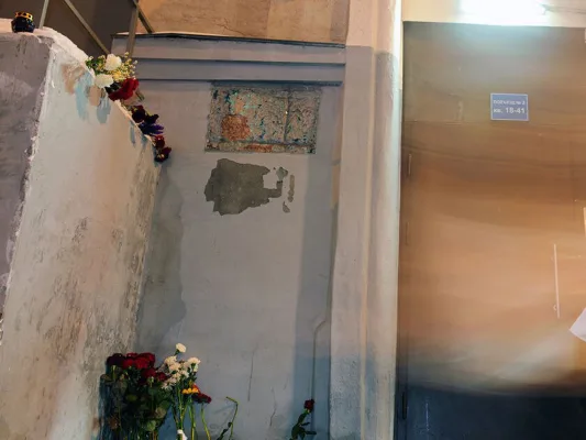 Доска находится на здании №8/12, где проживала Политковская.