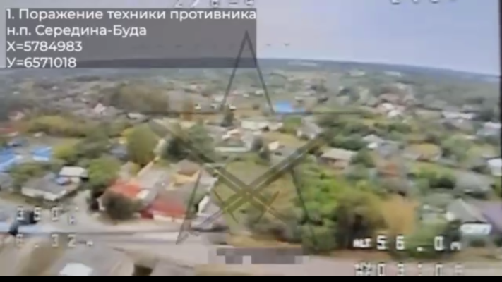Разведкой вскрыт пункт временного размещения ВСУ, нанесен удар FPV-дроном, вражеская машина уничтожена.