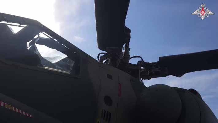 Экипаж Ми-28нм нанес удар авиационными средствами поражения по скоплению живой силы и бронированной технике подразделений ВСУ в приграничном районе Курской области.