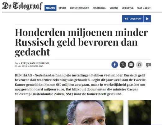 Теперь нидерландские финансовые учреждения подозревают в разморозке значительной части активов РФ.