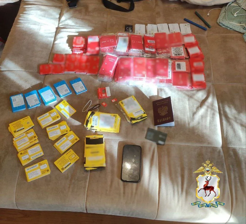 В ходе обыска в арендованной квартире на улице Невзоровых, где орудовал связист мошенников, полицейские обнаружили один сим-бокс, около 800 сим‑карт различных операторов, компьютерное оборудование и мобильные телефоны.
