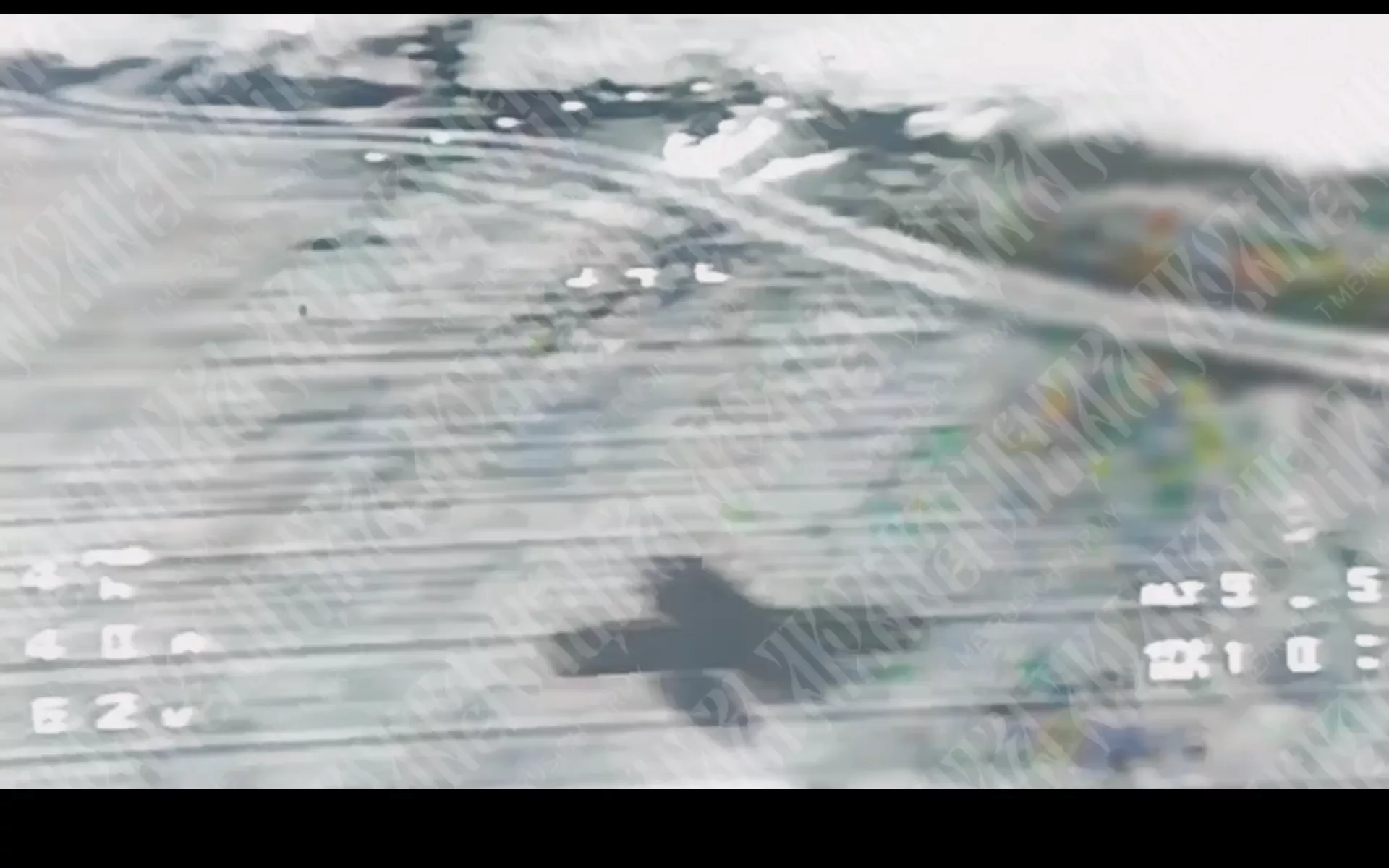 Можно заметить, как РЭБ противника «душит» картинку, но это не мешает нашим операторам поражать цели, что подтверждают кадры объективного контроля.