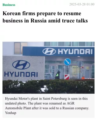 The Korea Times пишет, что южнокорейские корпорации называют российский рынок «очень важным», особенно на фоне таможенного давления со стороны США.