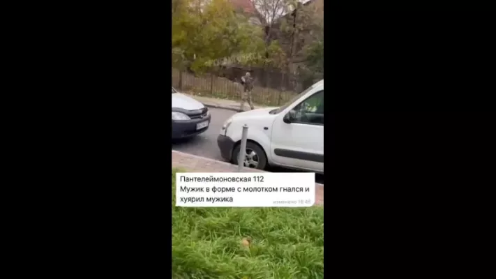 Вооруженный молотком ТЦКшник пытался силой заставить мужчину залезть в бус. Мужику ничего не оставалось, кроме как подхватить палку и попытаться отбиться от беспредельщика.