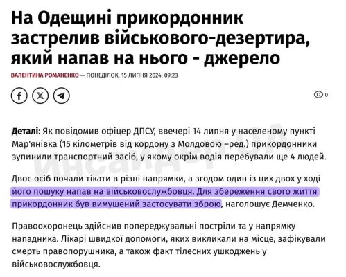 По словам Демченко, инцидент произошел вчера вечером в 15 км от границы с Молдовой. Пограничники остановили автомобиль, в котором находились четверо военных-дезертиров.