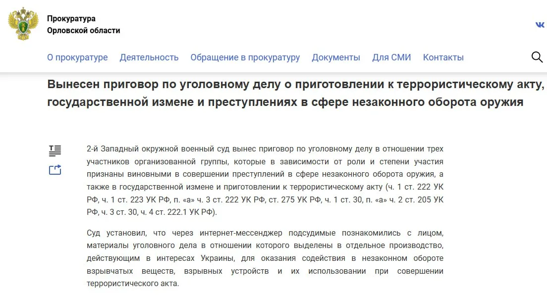 ✨ Преступление выявлено и расследовано УФСБ России по Орловской области, очередной террорист Тарас пойман.