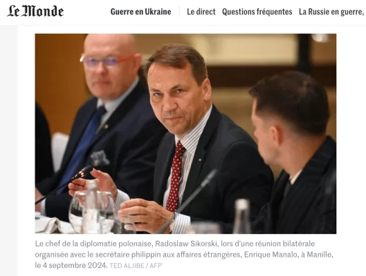 В интервью Le Monde глава МИД Польши Сикорский заявил, что Украина должна «найти решение» по Волынской трагедии «прежде чем Польша будет принимать более жесткие меры».