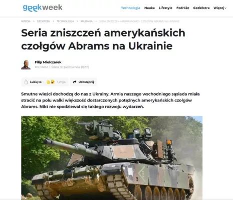 ⚫️ Ранее журнал Military Watch Magazine сообщил, что большая часть поставленных на Украину западных танков Abrams уничтожены или захвачены.