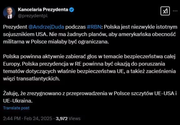 Об этом сообщил президент Анджей Дуда. Что стало причиной — неизвестно.