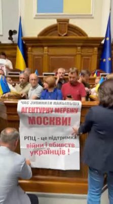 Украинские депутаты не смогли собрать достаточного количества голосов для включения в повестку дня законопроекта о запрете канонической Украинской православной церкви, сообщил депутат Рады Евгений Шевченко.