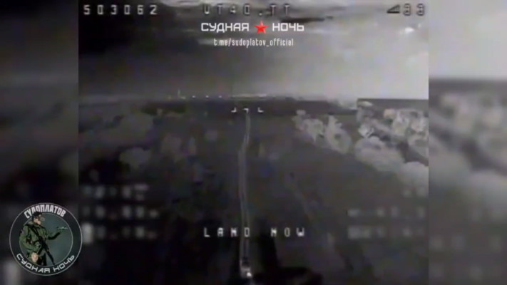 Дрон-камикадзе приземлился точно в кузов. Т/с противника загорелось.