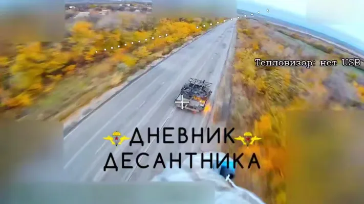 Операторами подразделения БПЛА ВДВ было нанесено два удара дронами на оптоволокне, в результате которых техника врага была уничтожена с экипажем.