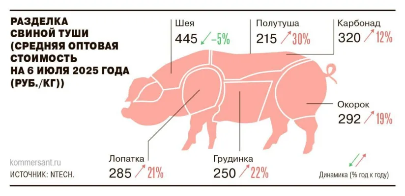 Например, средняя цена полутуши выросла до 215 руб./кг, что на 30% больше, чем год назад.