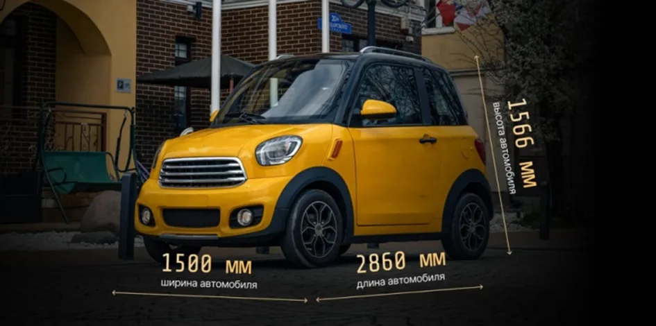 Для управления Eonyx City требуется водительское удостоверение категории B1, а на самом автомобиле установлены мотоциклетные номера. Это не совсем привычно для большинства россиян, но именно такие правила соблюдаются для таких транспортных средств. Габариты машины поражают: длина всего 2,86 метра, что делает ее даже компактнее классической Оки. В салоне предусмотрено всего два места, дизайн явно вдохновлен культовым Mini.
