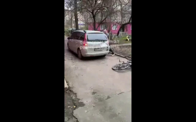 Судя по кадрам схватили парня прямо во дворе его дома, стащив с велосипеда.