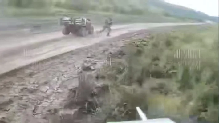 Экипажам квадроциклов повезло, они пока ещё живы. Первые успели разбежаться перед ударом, а вот вторые заметили наш «КВН» издалека и предприняли попытку уничтожить его стрелковым вооружением, но неуспешно.