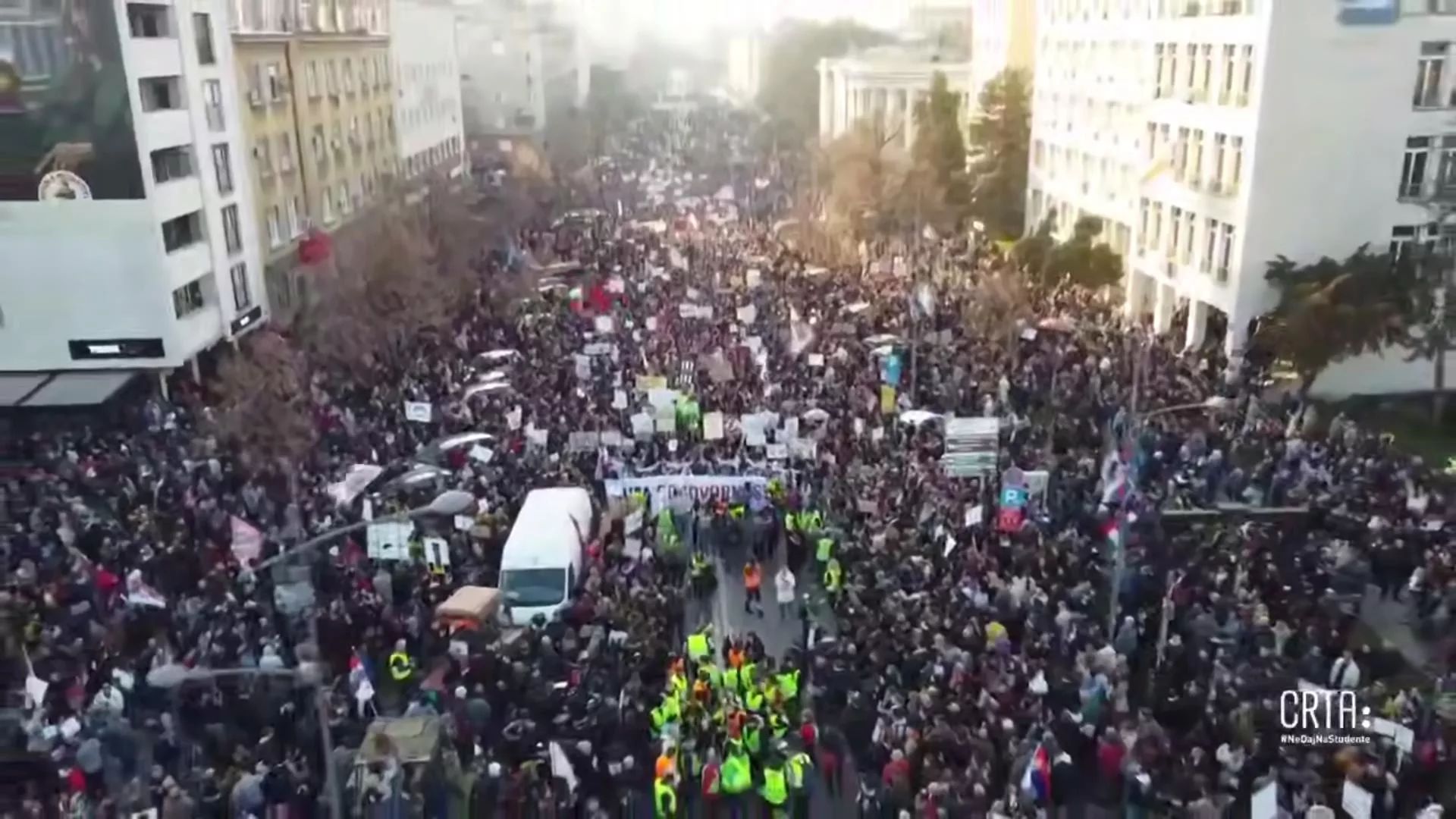 - В январе протесты расширились, начались забастовки, студенты организовали 80-километровый марш на Нови-Сад и блокировали ключевые мосты.