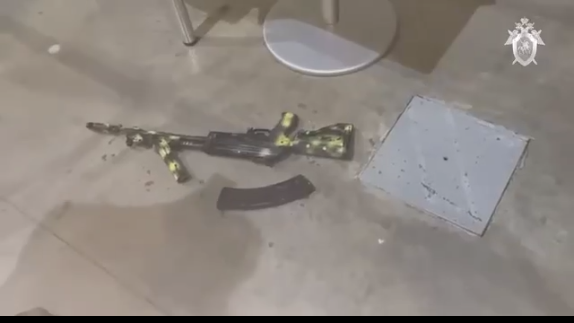 На записи виден один из автоматов террористов, несколько сдвоенных магазинов и большое количество патронов, а также другие элементы экипировки.