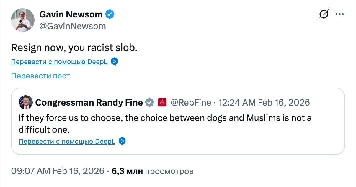 Губернатор Калифорнии от Демпартии Гевин Ньюсом назвал Файна отбросом общества и расистом, а тот в ответ назвал Ньюсома дебилом.