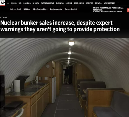 ❗️ Бункеры представляют собой подземные сооружения, начиная с небольших металлических ящиков и заканчивая дорогими особняками, возведенными под землей, пишет АР. Покупатели уверены, что это спасет их на случай ядерного удара.