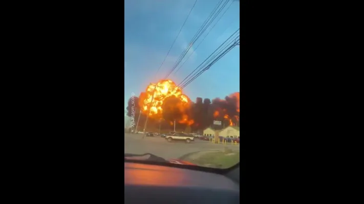 На видео запечатлен момент крушения самолёта. При ударе о землю образовался огромный огненный шар. Несколько зданий за взлетно-посадочной полосой были охвачены огнем.