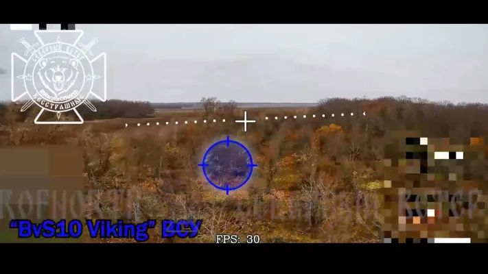 Очень редкий британо-шведский двухсоставной БТР BvS 10 уничтожен дроном на оптоволокне в лесном массиве Сумской области.