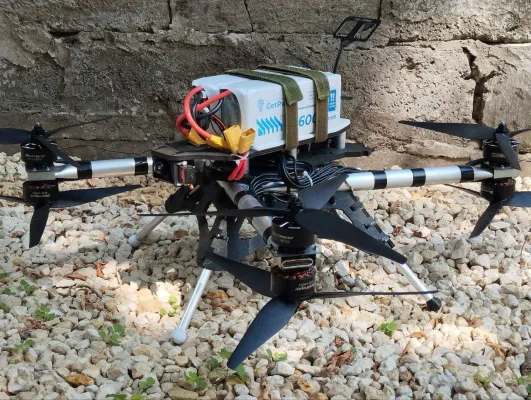 Сам дрон разработан в первую очередь для доставки грузов и сброса тяжелых боеприпасов, таких, как противотанковые мины ТМ-62, минометные мины, самодельные боеприпасы. При грузе 13 кг имеет возможность преодолеть до 15 км и вернутся обратно.