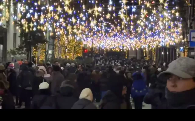 Вчера вечером было теплее, чем в предыдущие дни, людей на проспекте Руставели вновь стало немного больше. Все прошло мирно — по митинговали и разошлись.