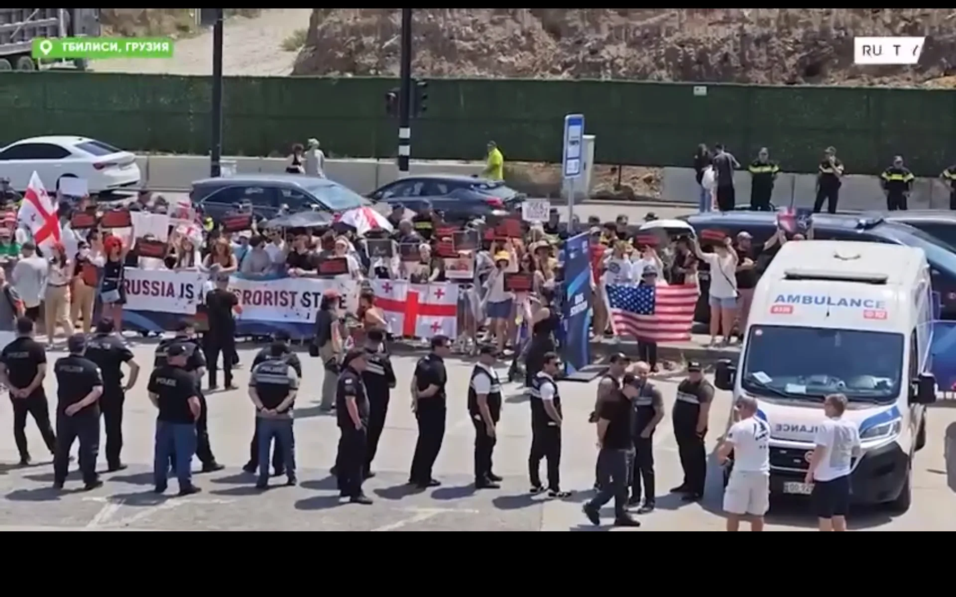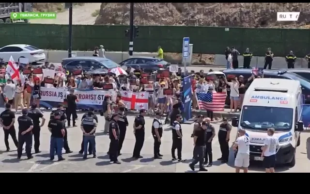 Русофобские провокации в Тбилиси набирают обороты. Радикалы, выступающие против участия российских спортсменов в чемпионате мира по фехтованию, сожгли и растоптали триколор у гостиницы, где размещена наша сборная.