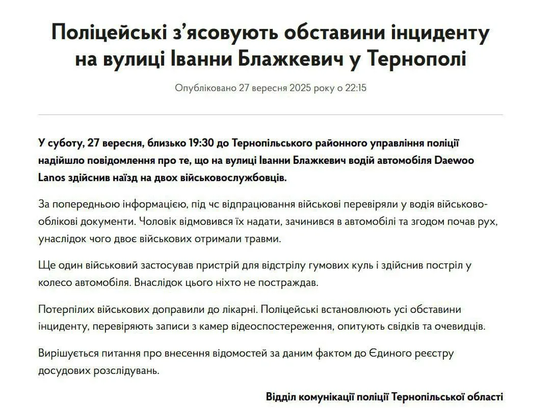 Военкомы хотели проверить документы водителя, но тот отказался их предоставлять и уехал, сбив двух сотрудников ТЦК.