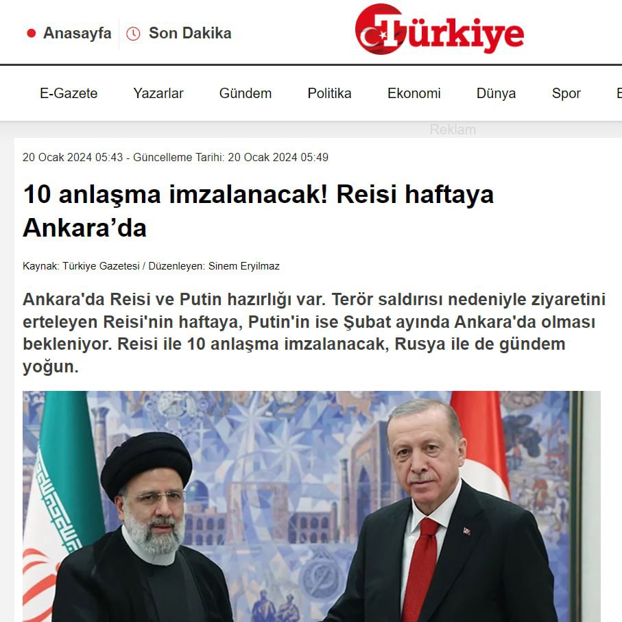 🇮🇷🇹🇷 Ожидается, что Ибрагим Раиси прибудет в Турцию уже в конце января, а Путин — в феврале.
