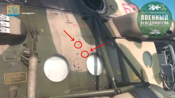 Однозначно можно говорить о том, что по вертолёту велась стрельба. Можно заметить пулевые отверстия в десантном отсеке на уровне топливного бака.