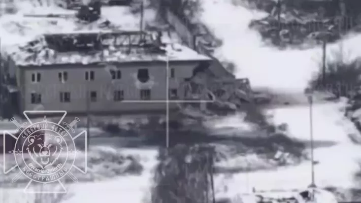 Оператор разведывательного БпЛА ГВ «Север» заметил украинского фашиста, забравшего свой дрон с точки приземления и укрывшегося в двухэтажном здании. Дрон-камикадзе Северян оперативно направился к цели для нанесения огневого поражения.