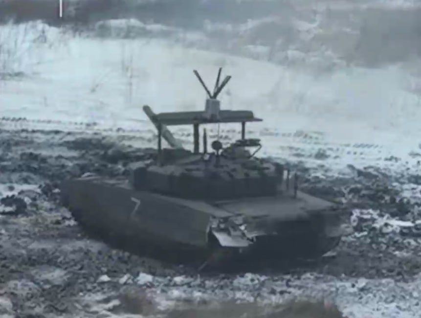 Среди них комплекс радиоэлектронной борьбы «Сания«. Первое, что бросается в глаза, это его размер, особенно по сравнению с «Волнорезом». Среди заявленных характеристик обнаружение дрона на дальности 1,5 км и противодействие на дальности 1 км. Мощность комплекса — 1100 ватт. Устанавливается прямо на противодроновую решетку над башней, среди подопытных танки Т-80БВМ 9-ой мотострелковой бригады 1-го Армейского корпуса.