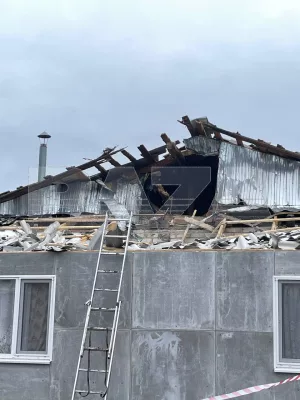 Беспилотник попал в середину крыши, на счастье хозяев, после удара пожара не возникло. Жильцов пустят домой только после проверки взрывотехниками.