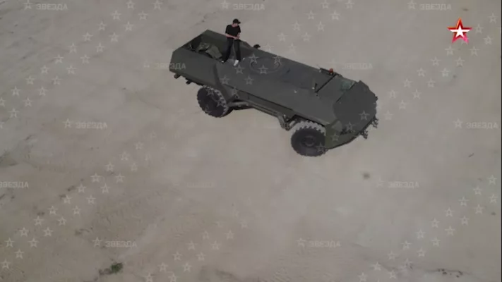 «Это многофункциональный робототехнический комплекс. Оператор может находиться на расстоянии более километра от транспортного средства», — рассказал начальник лаборатории по работе с робототехникой.