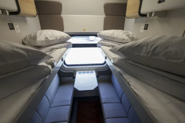 В каждом из восьми двухместных купе теперь предусмотрены закрытые шкафы над спальными местами, куда можно убрать не только ручную кладь, но и спортивный инвентарь. Для безопасности и удобства добавлены встроенные сейфы, кнопки вызова проводника, выдвижные экраны, розетки и USB-разъемы. Впервые в вагонах такого класса появилась полноценная душевая кабина с феном, а также общие для пассажиров утюг и гладильная доска. Это означает заметное повышение уровня сервиса на дальних маршрутах.