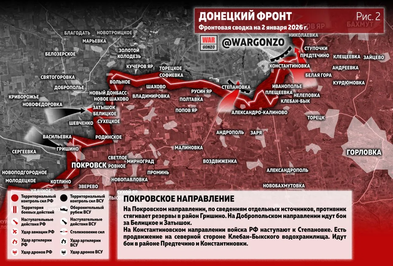На Покровском направлении, по сведениям отдельных источников, противник стягивает резервы в район Гришино. На Добропольском направлении идут бои за Белицкое и Затышок. (Рис. 2.1)