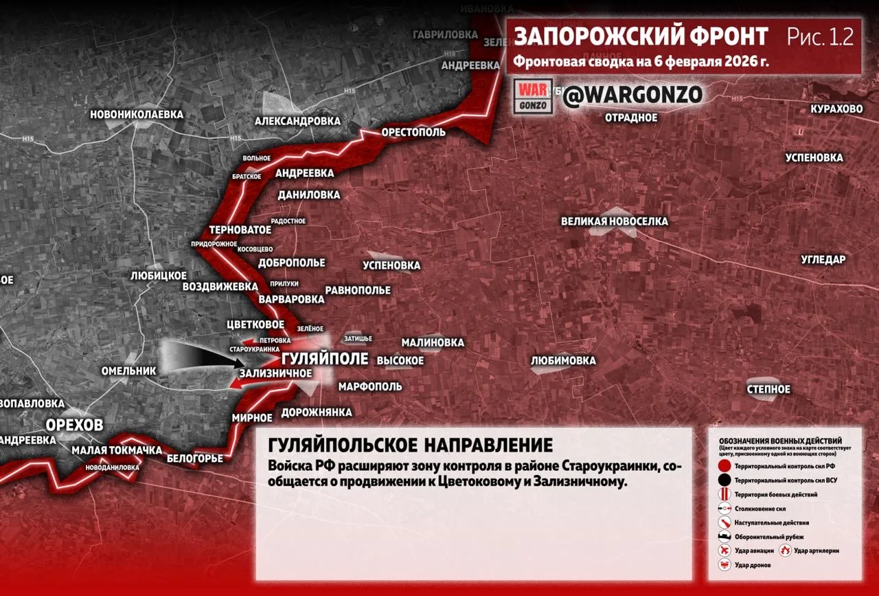 На Гуляйпольском направлении войска РФ расширяют зону контроля в районе Староукраинки, сообщается о продвижении к Цветковому и Зализничному. (Рис. 1.2)
